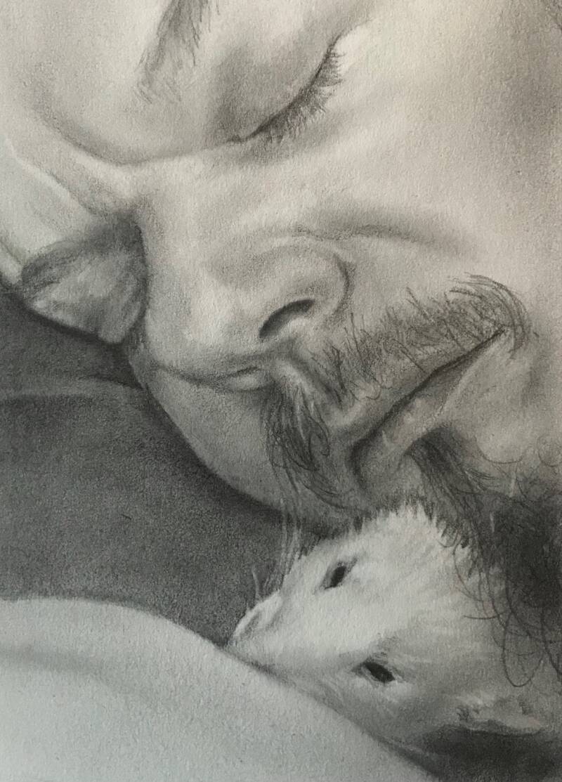 Vroeger toen ik bij mijn bomma op bezoek was, kon ik uren staren naar een klein tekeningetje dat aan de muur hing. Het was een door haar oom getekend portret van haar als heel klein meisje terwijl ze boven haar bordje in slaap gevallen was.